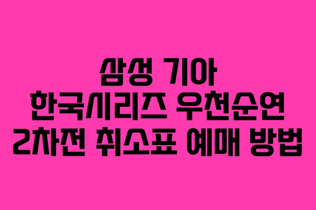 2024년 삼성과 기아의 한국시리즈 우천순연 2차전 취소표를 예매하는 방법에 대해 알아보겠습니다. 이번 포스트에서는 취소표를 잡는 팁과 함께 예매 과정에 대해 자세히 설명드리겠습니다.