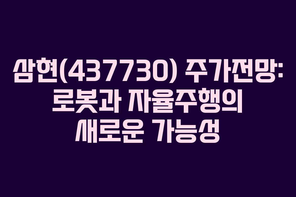 삼현(437730)의 주가는 앞으로 어떻게 될까요?