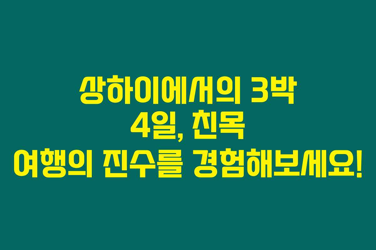 제가 직접 경험해본 결과로는, 친구들과 함께 떠난 상하이 3박 4일 패키지 여행은 정말 멋진 추억을 선사해주었어요. 이 여행에서 우리는 쇼핑, 유람선, 문화 탐방 등 다채로운 경험을 즐겼답니다. 아래를 읽어보시면, 상하이의 매력을 만끽할 수 있는 힌트를 얻으실 수 있을 거예요!