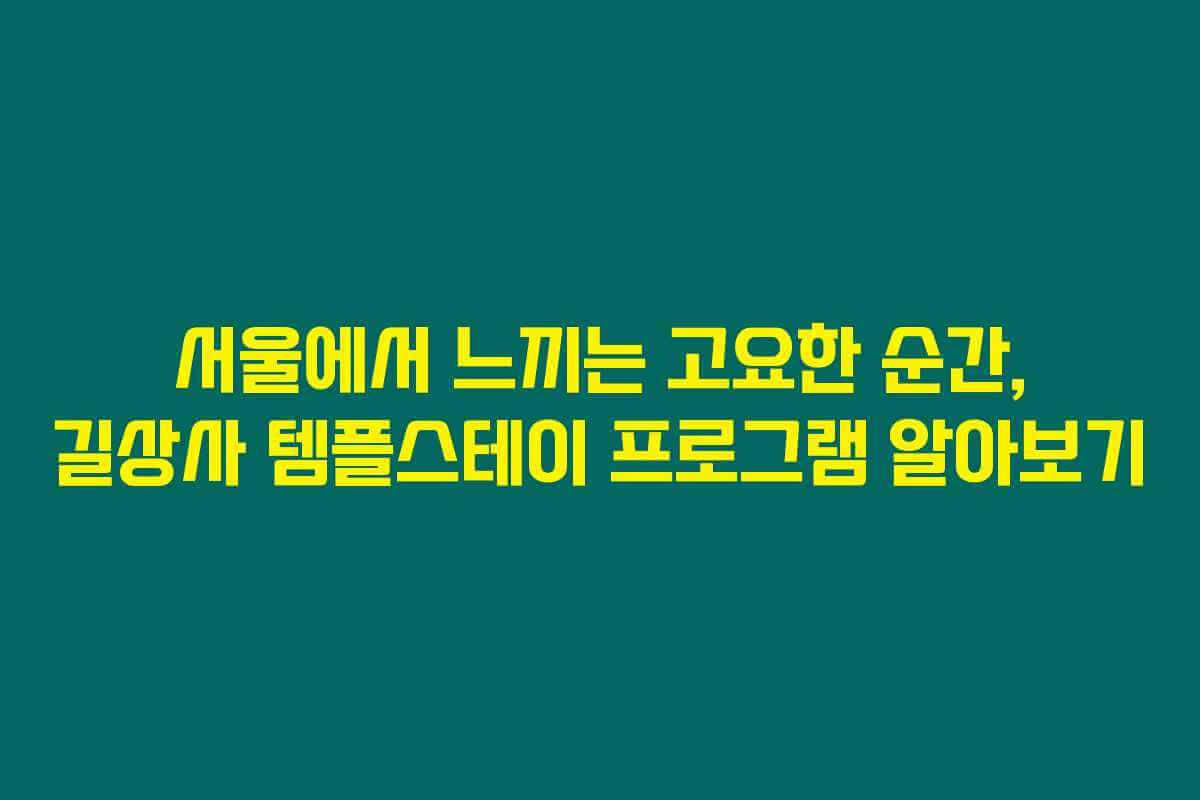 제가 직접 경험해본 결과로는, 길상사에서의 템플스테이는 일상의 고단함을 느끼며, 마음의 평화를 찾을 수 있는 소중한 기회랍니다. 서울이라는 번잡한 도시에서도 깊은 사색과 명상을 통해 맑은 정신을 되찾을 수 있는 방법을 알아보았어요. 아래를 읽어보시면, 길상사의 다양한 템플스테이 프로그램과 가격, 신청 방법에 대해 유용한 정보를 얻으실 수 있을 거예요.