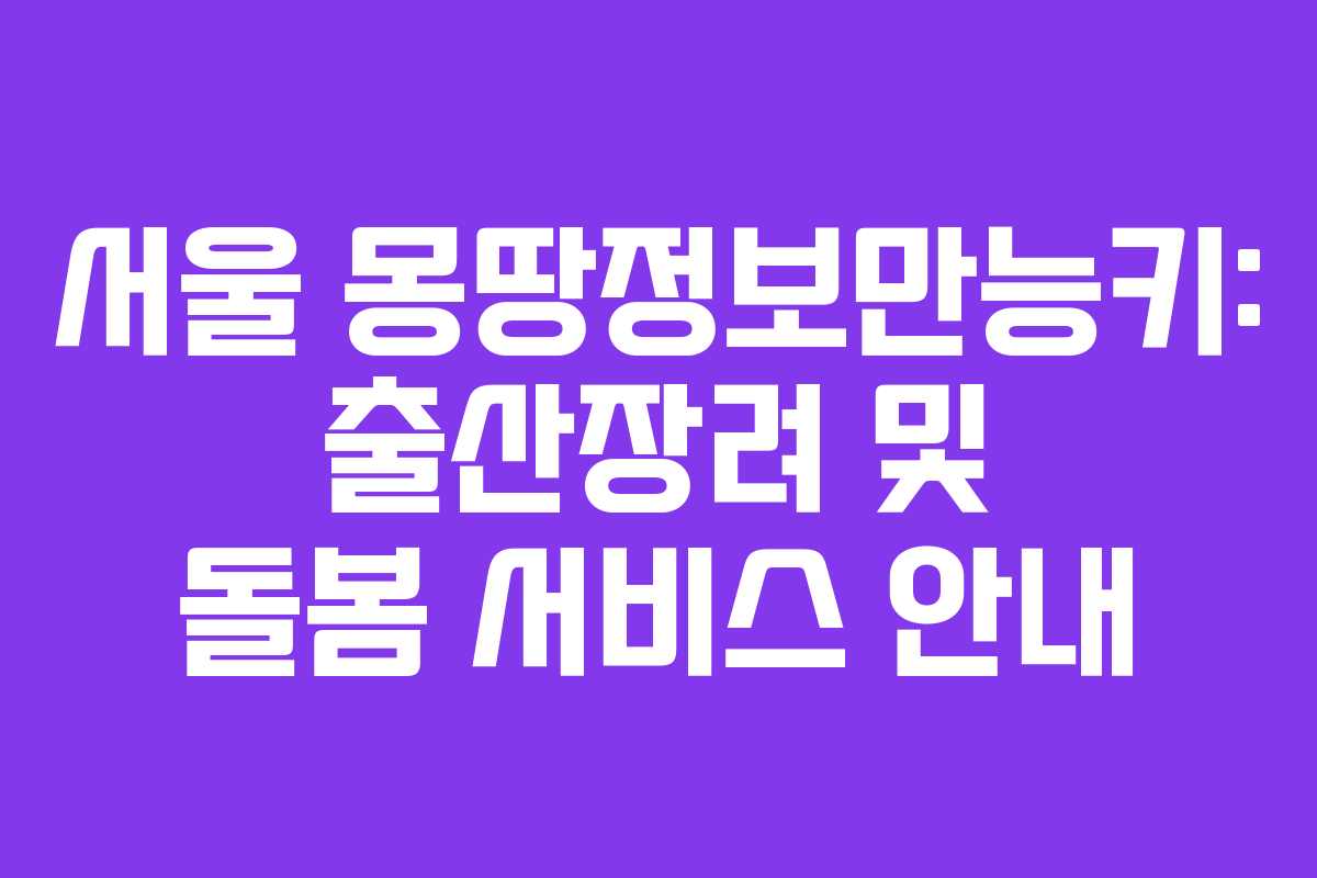 서울 몽땅정보만능키는 서울시에서 제공하는 통합 정보 플랫폼으로, 시민들이 필요한 다양한 정보를 쉽게 접근할 수 있도록 돕습니다. 출산장려와 관련된 서비스 외에도 여러 가지 복지 정보가 포함되어 있습니다.