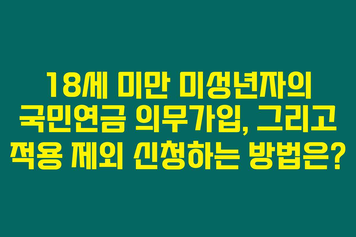 18세 미만 미성년자도 국민연금에 가입해야 하며, 원할 경우에는 적용 제외 신청서를 통해 가입을 피할 수 있다는 점을 잊지 마세요. 이러한 절차들은 나중에 자신의 미래를 위한 투자로 이어질 수 있다는 생각을 해보시면 좋겠습니다.
