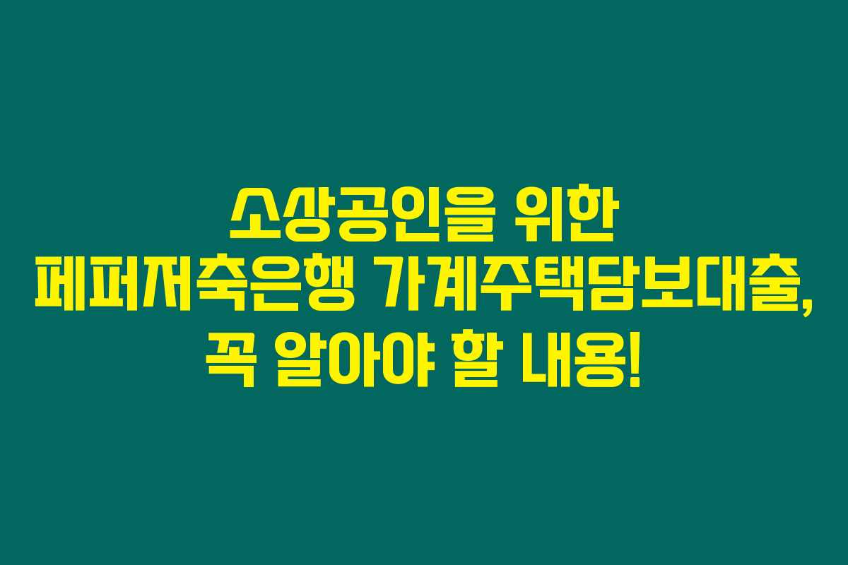 제가 직접 체크해본 바로는, 최근 많은 소상공인들이 사업 자금을 연결하기 위해 주택을 담보로 대출을 고민하고 있습니다. 특히 페퍼저축은행의 가계주택담보대출이 그 주인공인데요. 이 대출은 주택소유자뿐만 아니라 소상공인에게도 유용하게 활용될 수 있답니다. 아래를 읽어보시면 이 대출의 다양한 조건과 특징을 모두 배워보실 수 있어요!