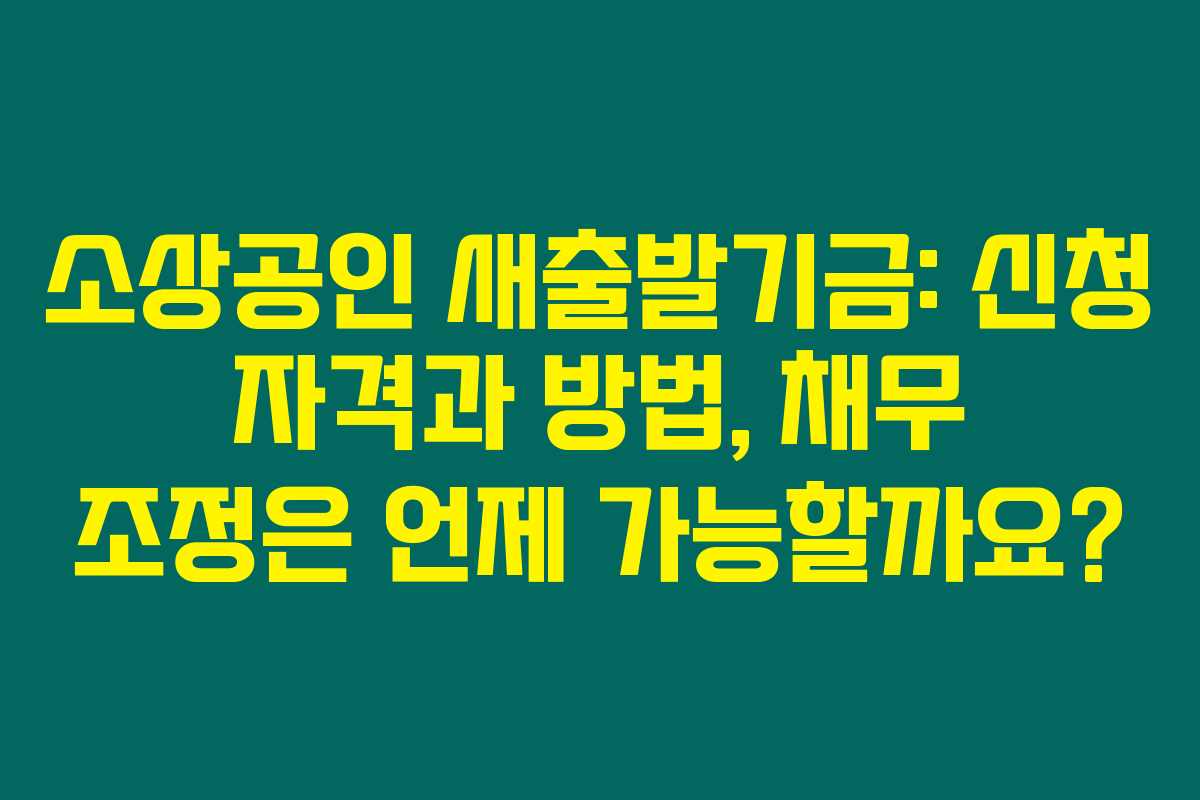 제가 직접 경험해본 결과로는, 최근 소상공인들에게 코로나19로 인한 경제적 어려움을 해결하기 위해 소상공인 새출발기금이 주요 지원 정책으로 떠오르고 있습니다. 이 자금을 통해 많은 소상공인들이 금융 부담을 줄이고 새로운 출발을 할 수 있기를 바랍니다. 아래를 읽어보시면 소상공인 새출발기금의 신청 자격, 방법, 그리고 채무 조정 신청 시점에 대해 자세히 알아보실 수 있습니다.