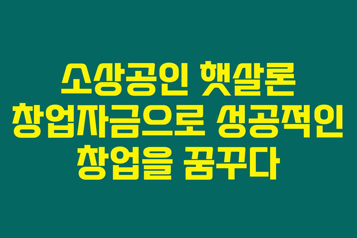 결과적으로, 소상공인 햇살론 창업자금은 창업을 위해 필요한 자금을 지원받을 수 있는 유용한 제도랍니다. 창업에 대한 열정이 있으시다면, 충분히 활용해보시길 바래요!