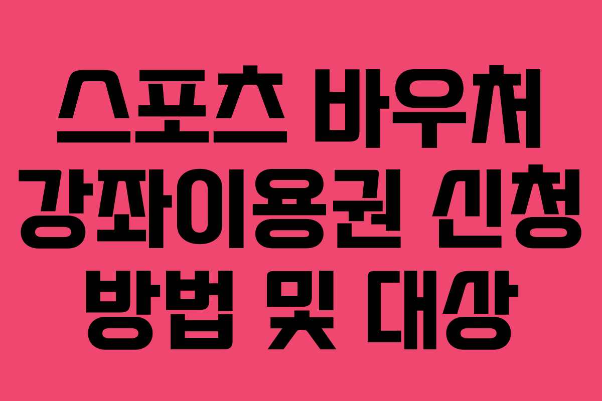 스포츠 강좌이용권은 문화체육관광부와 국민체육진흥공단에서 시행하는 복지 제도입니다. 지원 대상은 다음과 같습니다:
