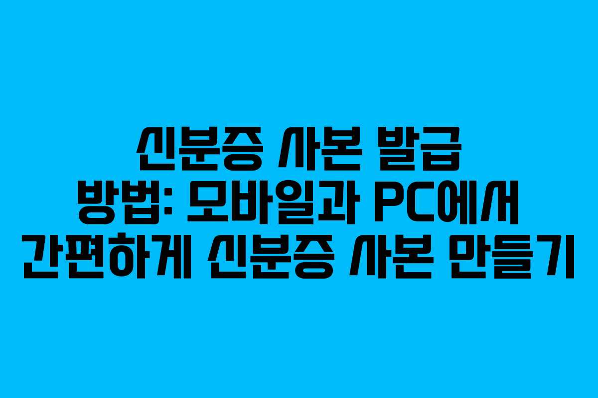 신분증 사본을 발급하는 과정은 매우 간단하며, 아래의 단계별 설명을 따라 진행하면 됩니다.