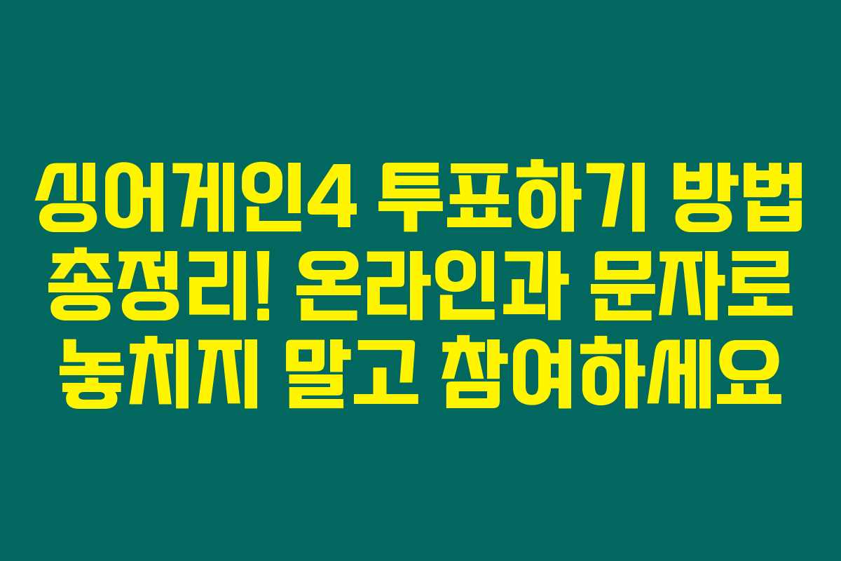 싱어게인4의 팬이시라면, 투표에 대한 방법을 제대로 알고 계신가요? 만약 아직 잘 모르시거나 혼란스러운 분들이 계시다면, 아래를 읽어보시면 싱어게인4 투표하기 방법에 대해 구체적으로 이해할 수 있을 거예요. 온라인 투표와 문자 투표를 통해 여러분이 좋아하는 참가자를 응원하세요!