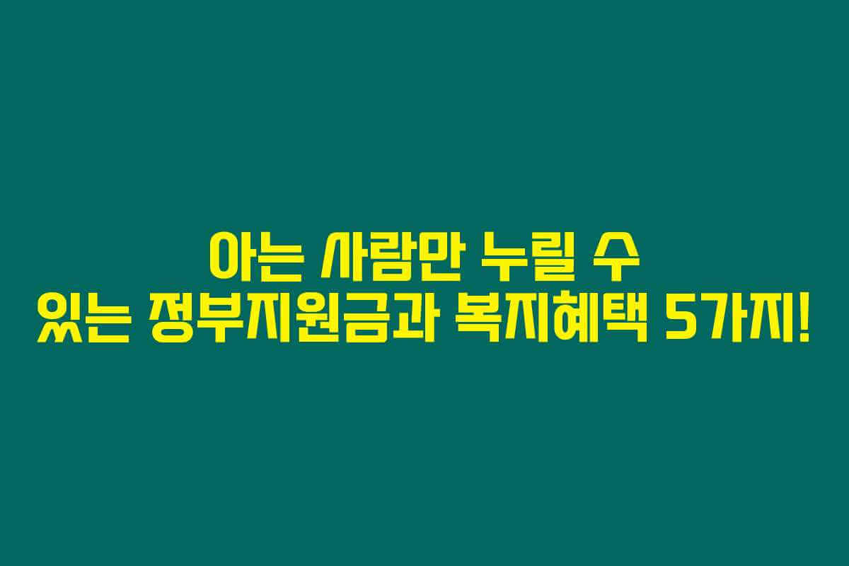 제가 직접 경험해본 결과로는, 많은 사람들이 잘 모르고 있는 정부의 복지혜택이 존재합니다. 특히 저소득 취약계층에 해당하는 기초생활수급자, 차상위 계층, 한부모 가정이 받을 수 있는 다양한 지원이 있지요. 아래를 읽어보시면, 아는 사람만 계속 받는 5가지 정부지원금과 복지혜택을 자세히 알아볼 수 있습니다.