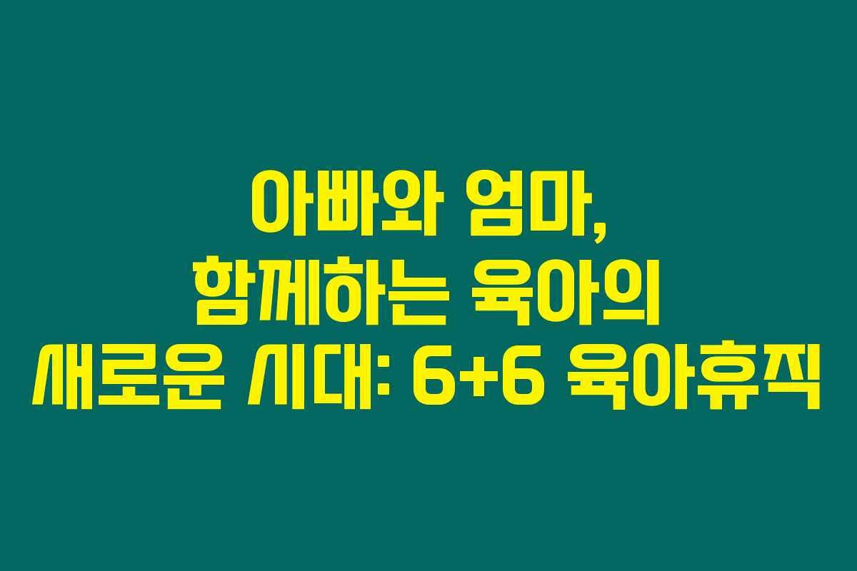 부모가 함께하는 육아휴직 제도인 6+6 육아휴직은 앞으로의 가족과 사회에 긍정적인 영향을 끼칠 것 같습니다. 이 새로운 변화가 많은 부모에게 도움이 되길 바랍니다.