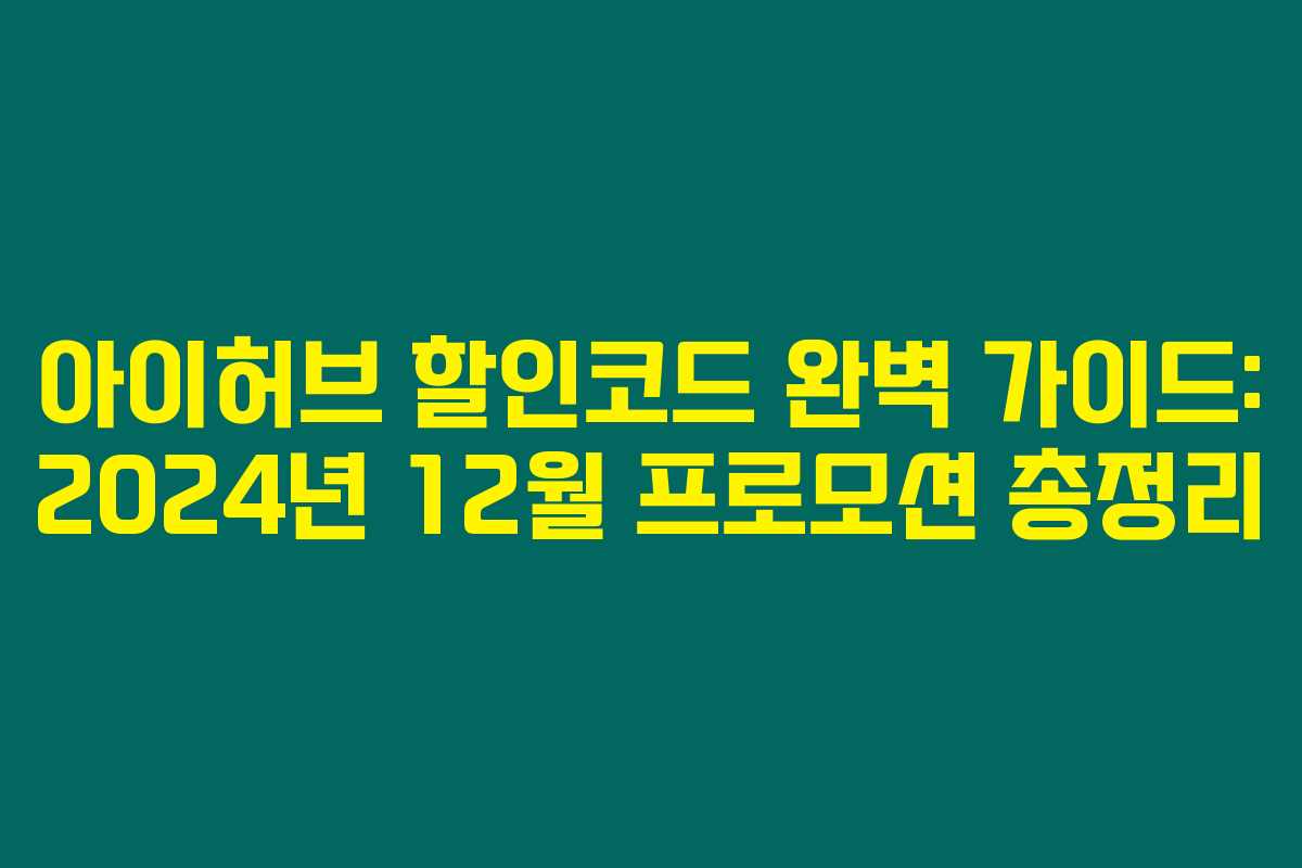 아이허브에서 영양제를 더 저렴하게 구매하고 싶으신가요? 이번 12월에는 여러 프로모션 코드와 할인율이 준비되어 있어요. 아래를 읽어보시면 스마트하게 할인코드를 활용해 최고의 혜택을 받아보실 수 있습니다. 더 이상 비싼 가격에 고민하지 마세요!