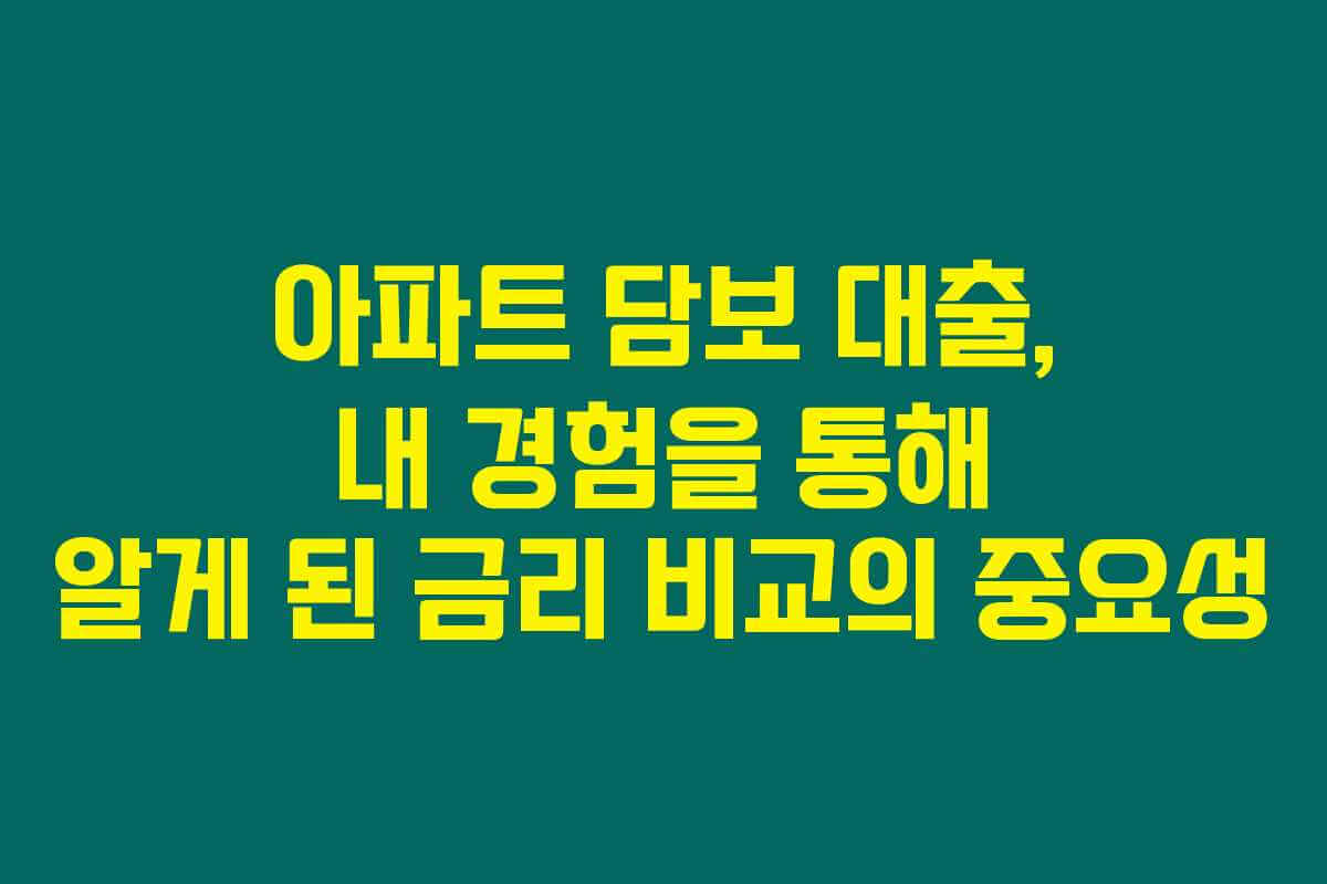 아파트 담보 대출은 큰 금액을 필요로 할 때 원하는 자금을 받기 좋은 방법인데요. 담보가 되는 아파트를 가지고 있다면, 이런 대출을 통해 필요한 자금을 손쉽게 신청할 수 있다는 점이 매력적이에요. 제가 그러면서 얻은 교훈은, 반드시 여러 금융기관의 조건을 비교하는 것이었다는 것이에요. 그렇지 않으면, 불리한 금리로 대출받아 손해를 보는 경우가 많거든요.