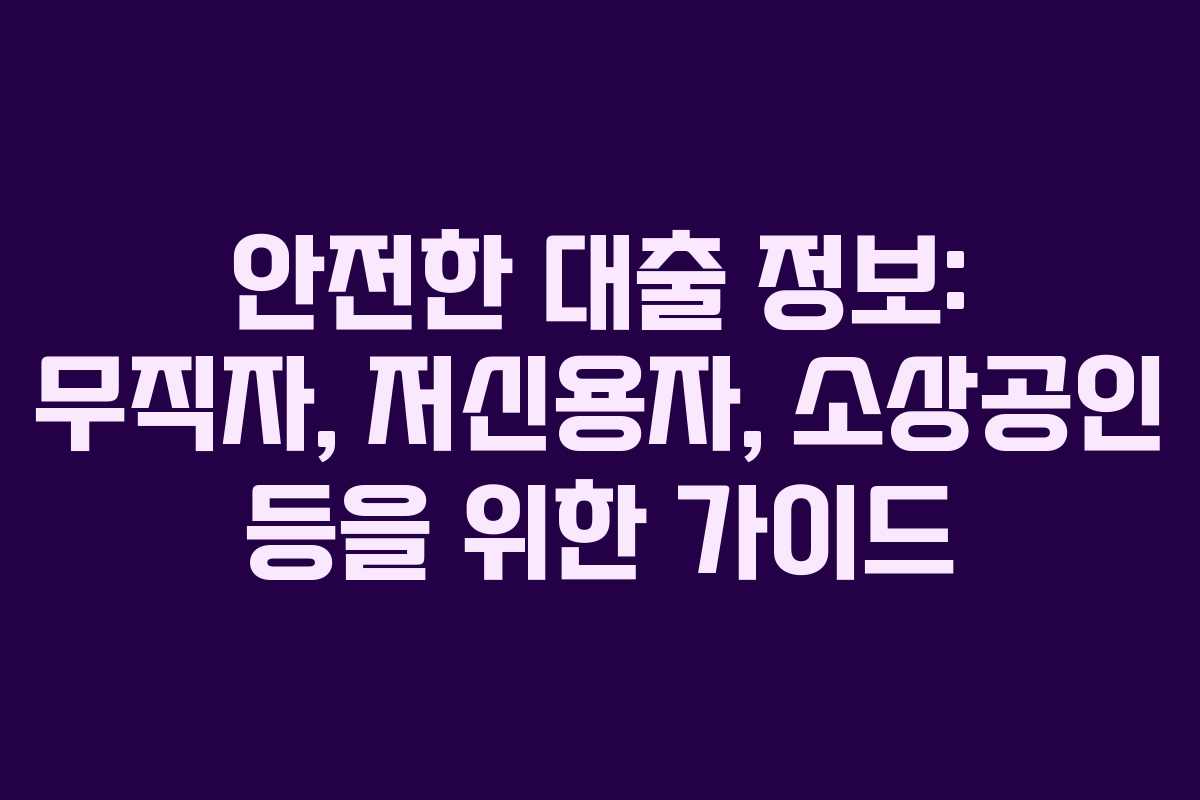 안전한 대출 정보: 무직자, 저신용자, 소상공인 등을 위한 가이드
