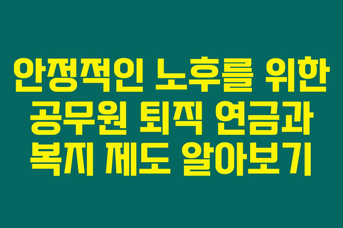제가 직접 경험해본 결과로는, 공무원으로 일하는 것은 많은 사람에게 안정적인 직업을 제공하며, 이를 통해 얻는 퇴직 연금과 다양한 복지 제도는 노후 생활에 상당한 역할을 합니다. 공무원으로서의 혜택을 보다 깊이 이해하고 싶으신 분들을 위해, 아래를 읽어보시면 공무원 연금과 그에 관련된 복지 혜택을 상세히 설명드리겠습니다.