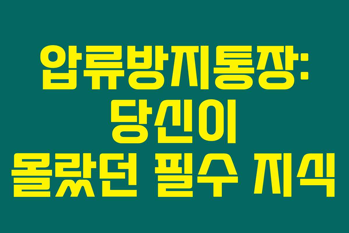 압류방지통장에 대해 들어보셨나요? 돈을 지키고 싶지만 여러 문제로 압류 위험에 놓인 여러분이라면 꼭 필요할 통장입니다. 이 글을 통해 압류방지통장이 무엇인지, 어떤 종류가 있는지 깊이 있게 알아보겠습니다. 아래를 읽어보시면 압류방지 통장이 왜 필수인지 깨닫게 될 거예요.