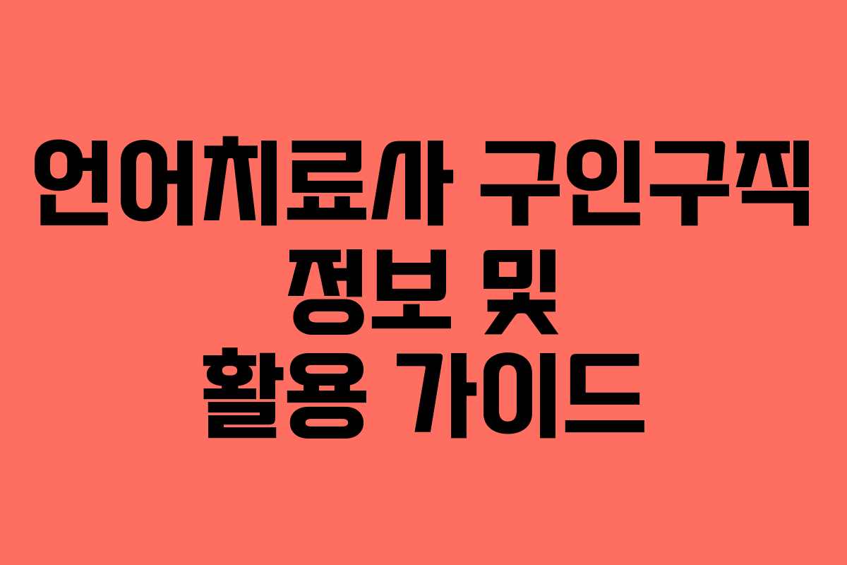 언어치료사(언어재활사)의 취업에 대한 정보와 구인구직 사이트를 소개합니다. 이 정보는 언어치료사로서의 경로를 탐색하는 데 유용하게 활용될 수 있습니다.