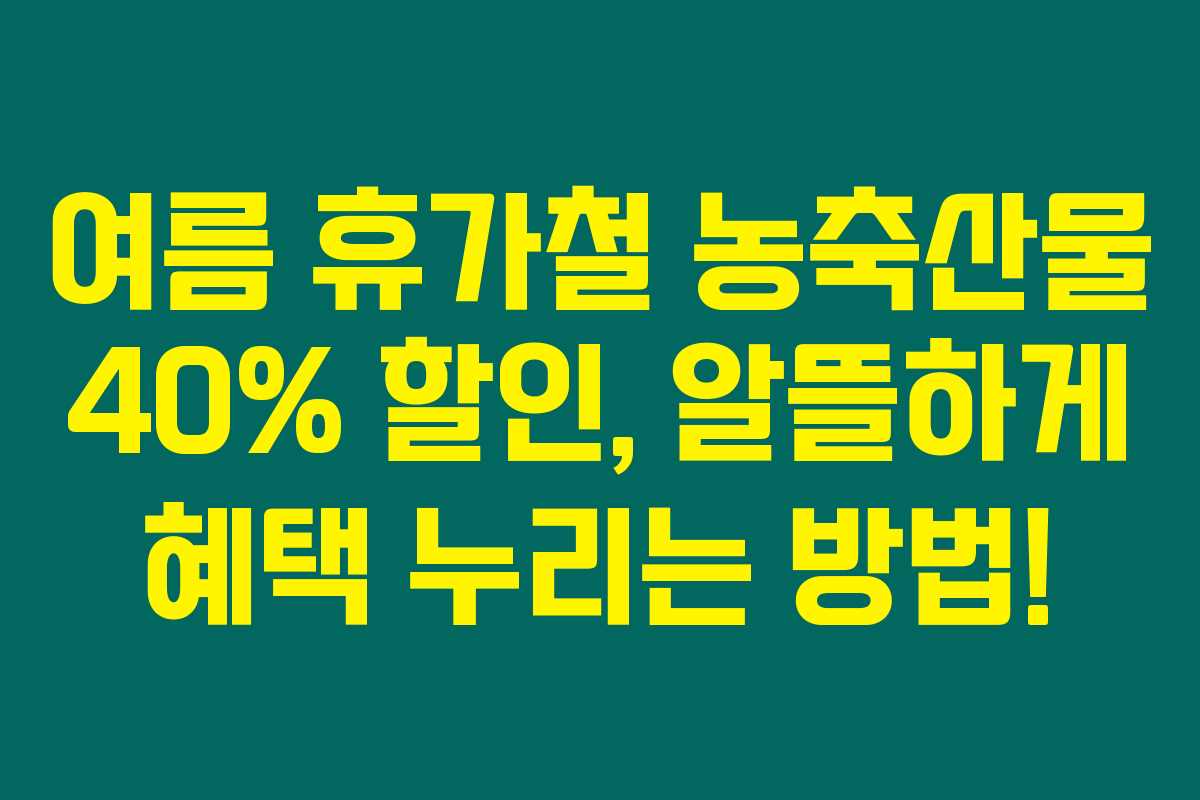 여름휴가철에 소중한 가족과 함께 먹거리를 준비하려면 경제적인 혜택도 놓칠 수 없죠. 이번에는 농림축산식품부 주관의 여름휴가철 농축산물 최대 40% 할인을 통해 쉽고 간편하게 구매하는 방법을 알아보도록 할게요. 아래를 읽어보시면 할인 혜택을 어떻게 누릴 수 있는지 상세히 안내합니다.
