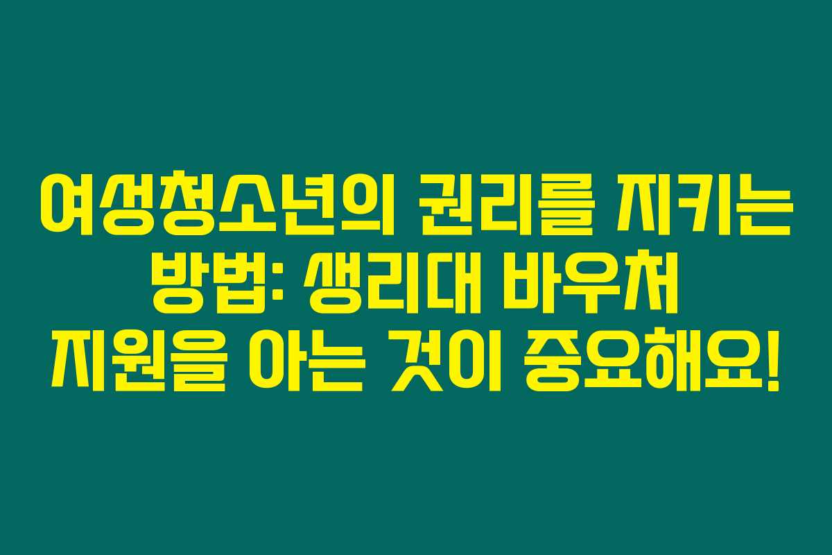 여성청소년을 위한 생리대 바우처 지원에 대한 모든 정보를 자세히 알려드립니다. 제가 직접 여러 경로를 통해 확인한 내용을 바탕으로 여성청소년의 건강한 성장과 기본적인 권리 보장을 위한 생리대 지원 사업에 대해 심도 있게 다룰 거예요.