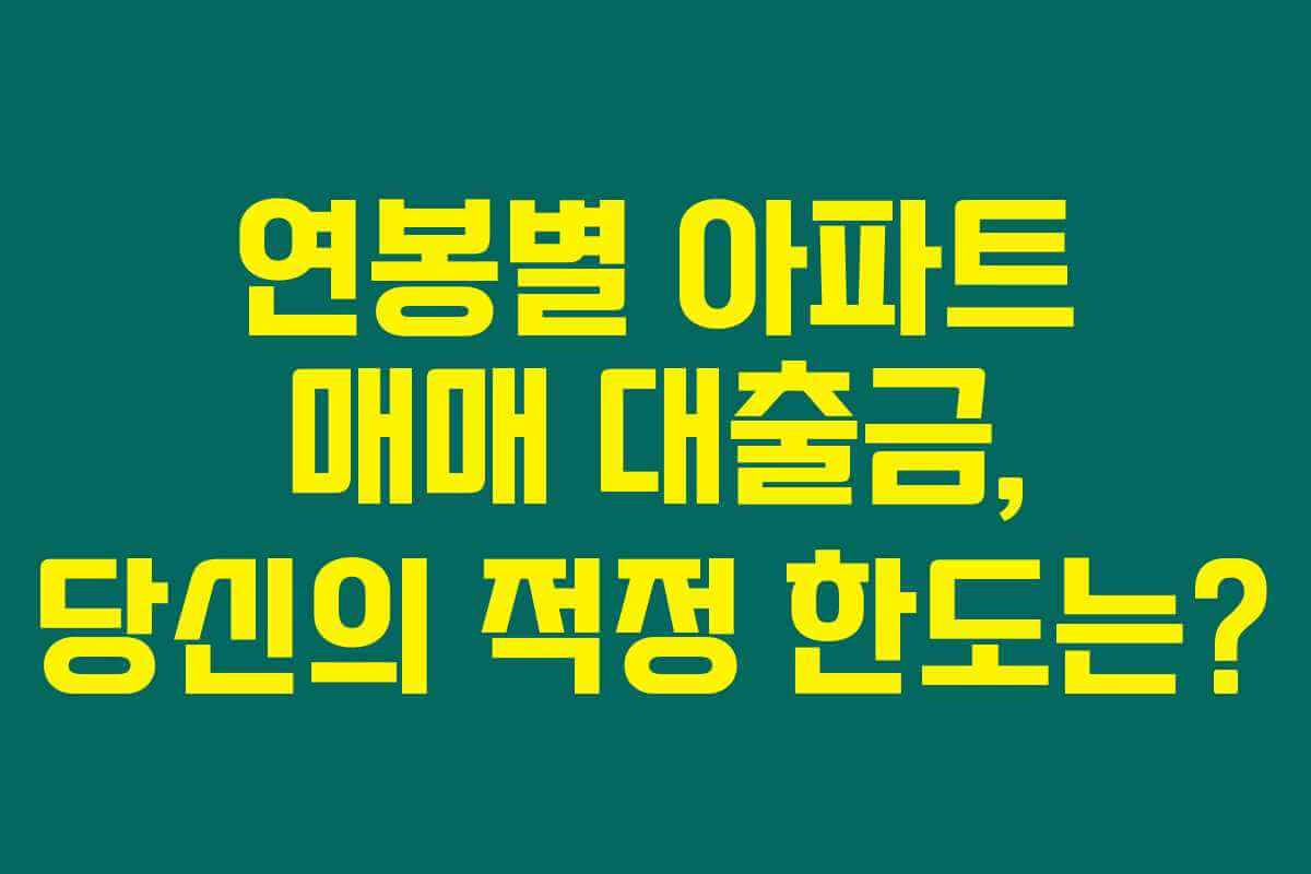 제가 직접 알아본 바로는, 아파트 매매 시 연봉에 따라 적정한 대출금이 달라지는 것을 많이 분들께서 모르시는 것 같아요. 연봉에 따라 대출 한도를 어떻게 설정할 수 있는지, 그리고 이를 통해 아파트 매수 가능성을 높이는 방법까지 알아보면 정말 유용할 거랍니다. 아래를 읽어보시면, 내 연봉에 맞는 적정 대출금을 파악하고, 현명한 자산관리를 위한 정보들을 제공받을 수 있을 거예요.