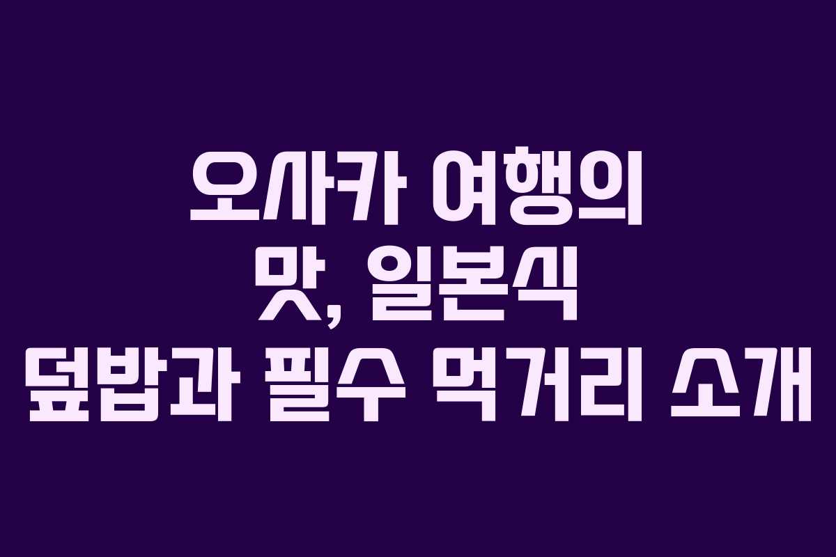 오사카에서의 특별한 맛을 집에서도 즐길 수 있는 요리와 추천 먹거리를 소개합니다. 일본의 대표적인 양념 소스를 활용한 간단한 요리와 오사카에서 꼭 먹어봐야 할 음식들을 함께 알아보겠습니다.