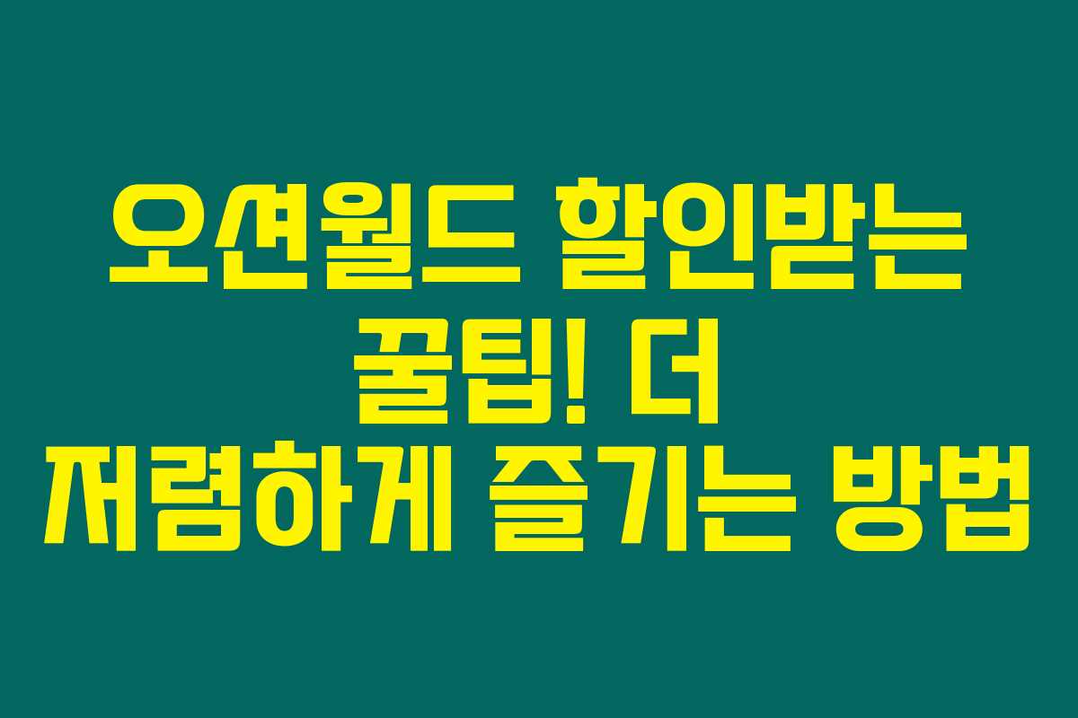 여름철 물놀이를 계획 중이신가요? 오션월드를 찾는다면 조금이라도 더 저렴하게 입장권을 구매하는 방법을 꼭 확인해 보세요. 오션월드에서 정가로 입장하게 되면 부담스러운 가격이잖아요. “오션월드 할인받고 물놀이 가고 싶은데 방법이 없을까?”라고 생각하신다면 아래를 잘 읽어보세요. 정말 유용한 꿀팁이 있답니다.