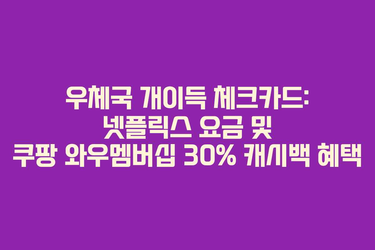 우체국 개이득 체크카드는 다양한 캐시백 혜택을 제공하여 사용자가 실질적인 금전적 이익을 누릴 수 있는 체크카드입니다. 특히 OTT 서비스와 패션, 멤버십 관련 결제에서 30% 캐시백을 받을 수 있어 많은 관심을 받고 있습니다.