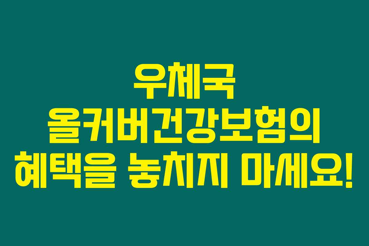 우체국 올커버건강보험은 건강한 삶을 누리기 위한 최상의 선택이에요. 여러분의 건강을 지키는데 큰 도움이 될 것이니, 꼭 고려해보세요!