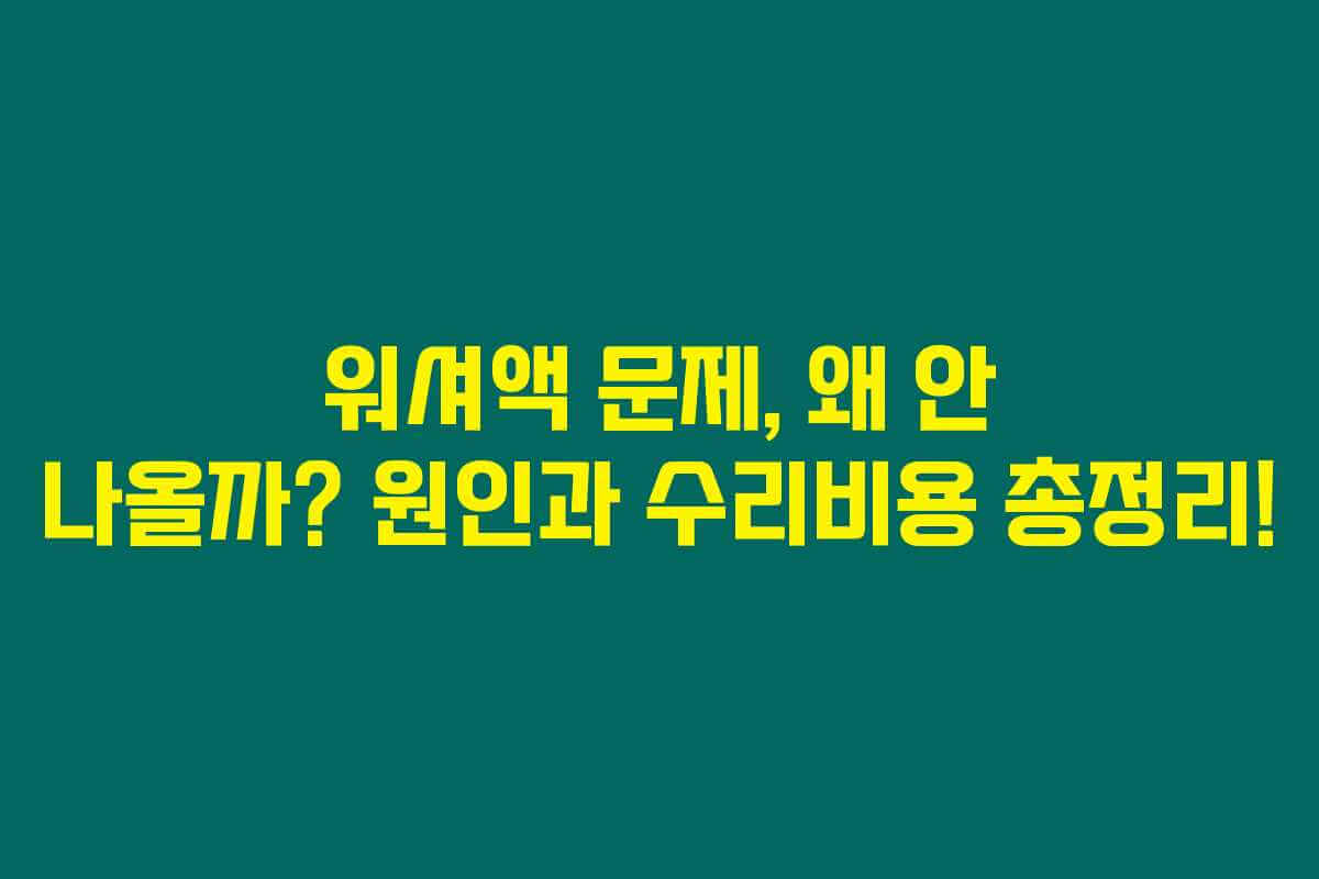 제가 직접 체크해본 바로는, 자동차를 운행할 때 워셔액이 제대로 나오지 않으면 전면 유리가 오염되더라도 안전한 시야를 확보하기 어려워 매우 불편해요. 오염된 유리를 청소하지 않으면 사고의 위험이 커질 수 있죠. 그러니 워셔액이 나오지 않는 이유와 해결 방법, 그리고 수리 비용에 대한 내용을 아래를 읽어보시면 도움이 될 거예요.