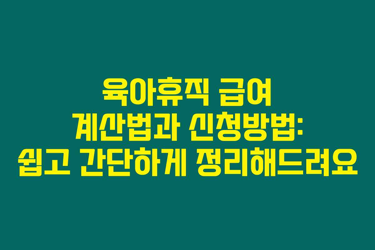 육아휴직 급여 계산법: 절대 놓치지 마세요