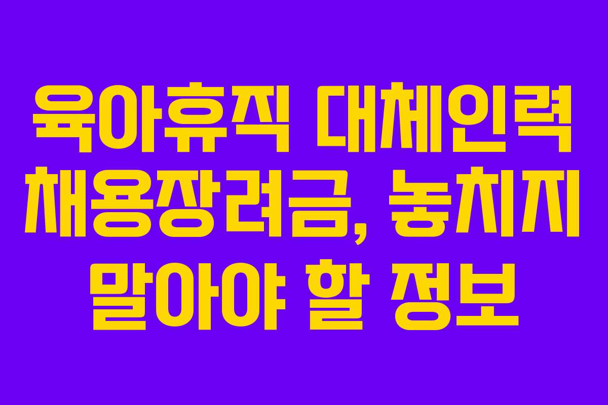 육아휴직 대체인력 채용장려금은 부모가 육아휴직을 이용하는 동안 기업이 대체 인력을 채용하도록 지원하는 금전적 보조금입니다. 이 제도는 일과 가정의 균형을 유지할 수 있도록 도와주는 중요한 정책으로, 부모가 육아에 집중할 수 있는 환경을 조성합니다.