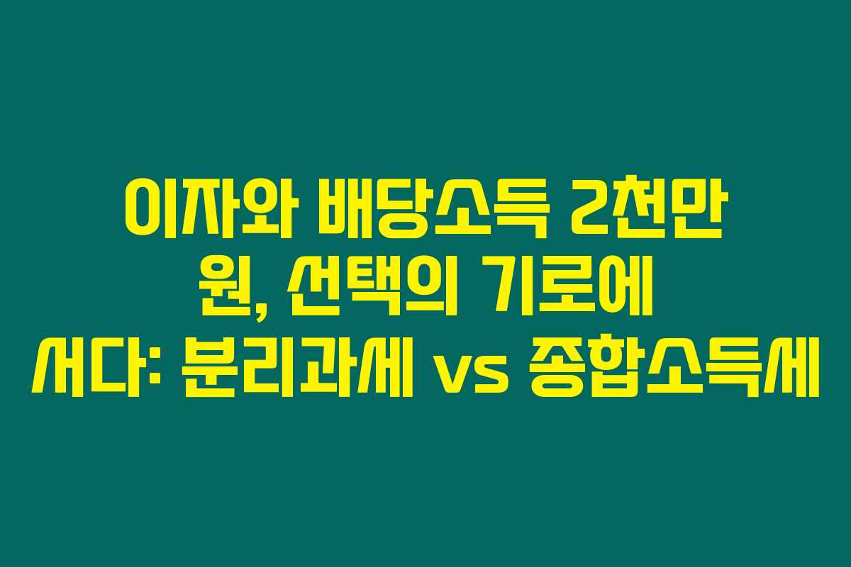 ### 분리과세와 종합소득세 중 어떤 방식이 더 유리할까요?
