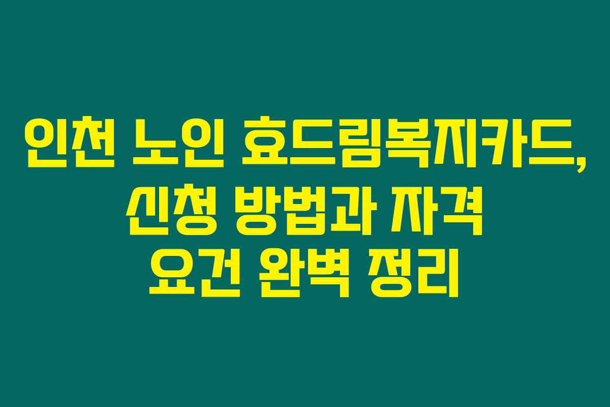 인천 노인 효드림복지카드, 신청 방법과 자격 요건 완벽 정리