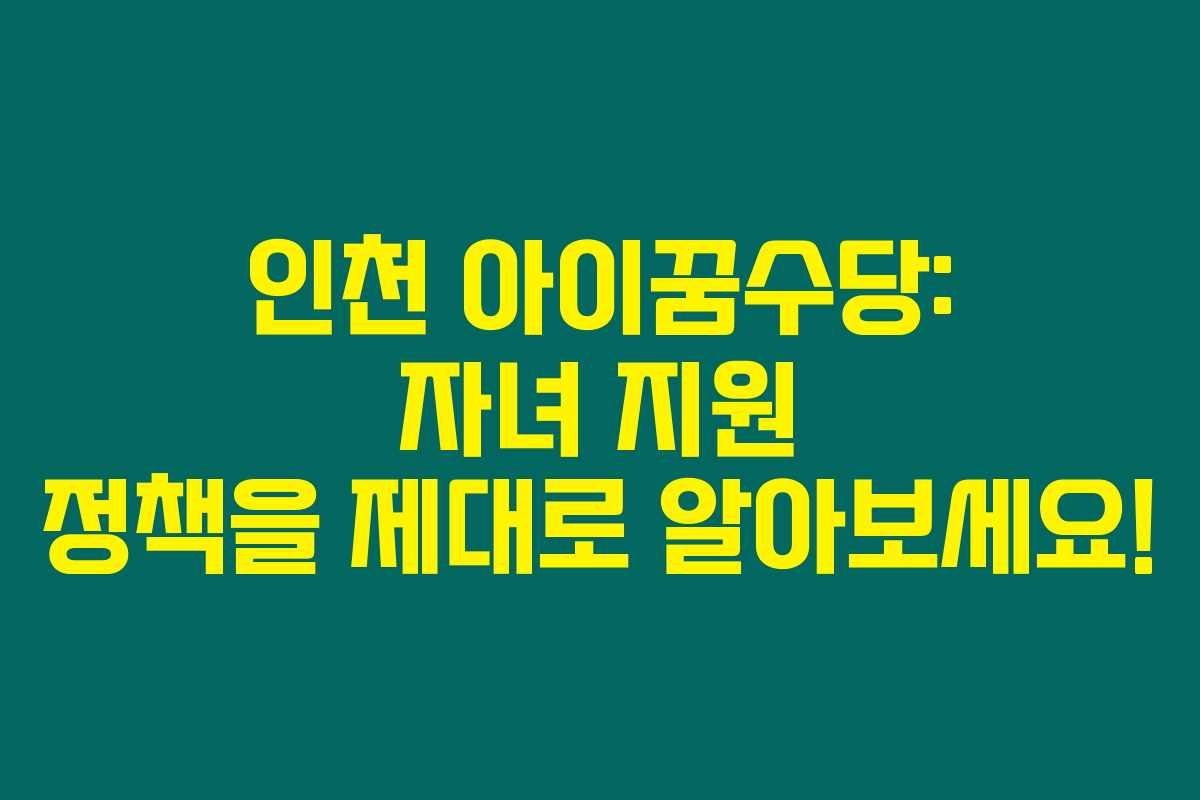 제가 직접 경험해본 결과로는 인천의 아이꿈수당은 저출산 문제를 해결하고, 어린 자녀를 둔 가정에서 경제적 부담을 덜어주는 아주 유용한 제도입니다. 이 글에서는 인천 아이꿈수당의 지원 대상, 신청 방법, 그리고 실제 지원 내용에 대해 깊이 있게 다뤄볼 것입니다. 아래를 읽어보시면 많은 도움이 되실 거예요.