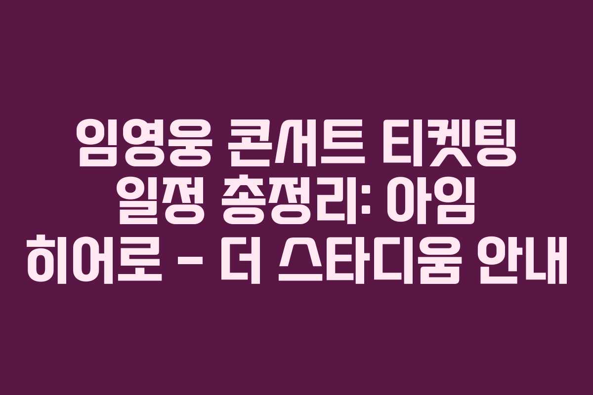 아래를 읽어보시면 2025 임영웅 콘서트의 티켓 오픈 일정, 예매 방법, 공연 일정과 장소를 한눈에 확인할 수 있습니다. 작성 시점의 안내를 바탕으로 업데이트 소식을 함께 담았습니다.