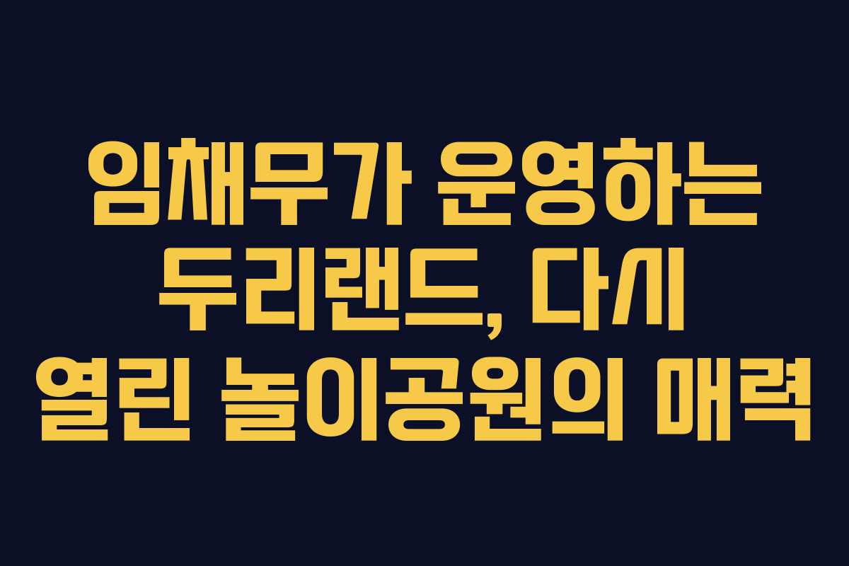 두리랜드가 재개장하면서 많은 이들의 관심을 받고 있습니다. 배우 임채무씨가 운영하는 이 놀이공원은 140억원의 빚을 감수하고도 아이들을 위한 꿈을 이어가고 있습니다. 코로나19로 인한 어려움에도 불구하고 임채무씨의 집념과 개장 소식은 큰 화제를 모으고 있습니다.