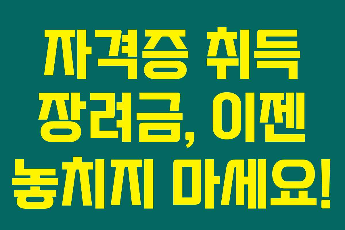 자격증 취득 장려금은 직업 역량을 강화하고 취업 경쟁력을 높이는 훌륭한 제도입니다. 아래를 읽어보시면 자격증 취득 장려금의 대상, 신청 방법, 지급액 등을 쉽고 자세하게 정리한 정보를 확인할 수 있습니다. 이제 자격증 취득 장려금을 이용해 더 나은 미래를 준비해 보세요!