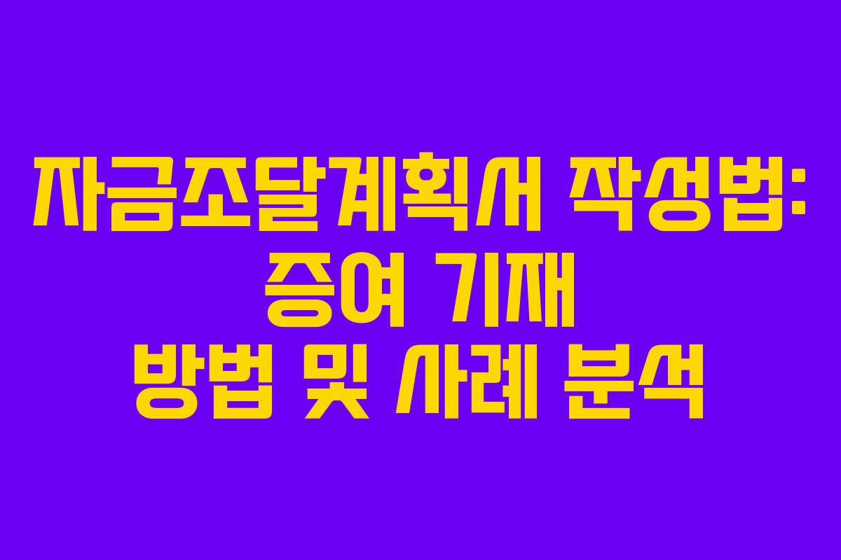 질문4: 자금조달계획서의 주요 목적은 무엇인가요?