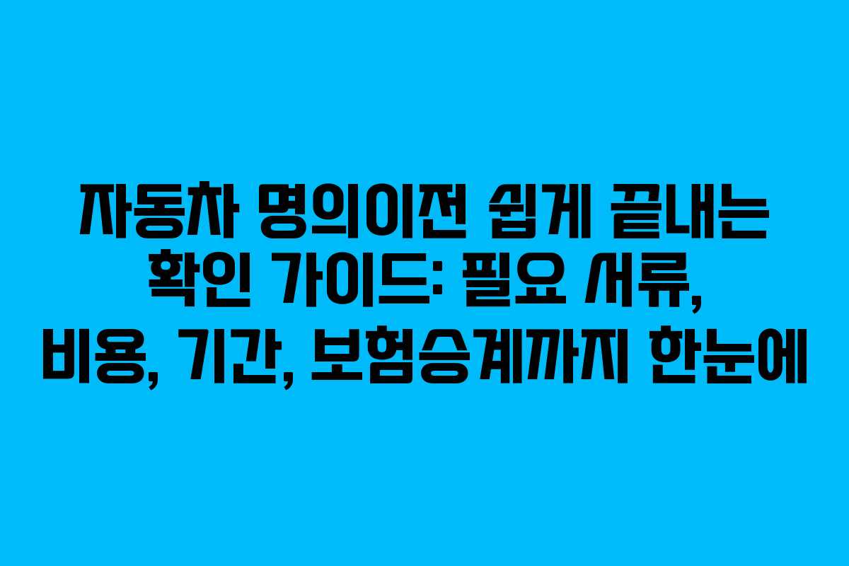 아래를 읽어보시면 자동차 명의이전의 절차 흐름과 필요한 서류, 비용 구성, 보험승계 체크포인트를 한눈에 확인하고, 당일 가능 여부와 팁까지 파악할 수 있습니다.