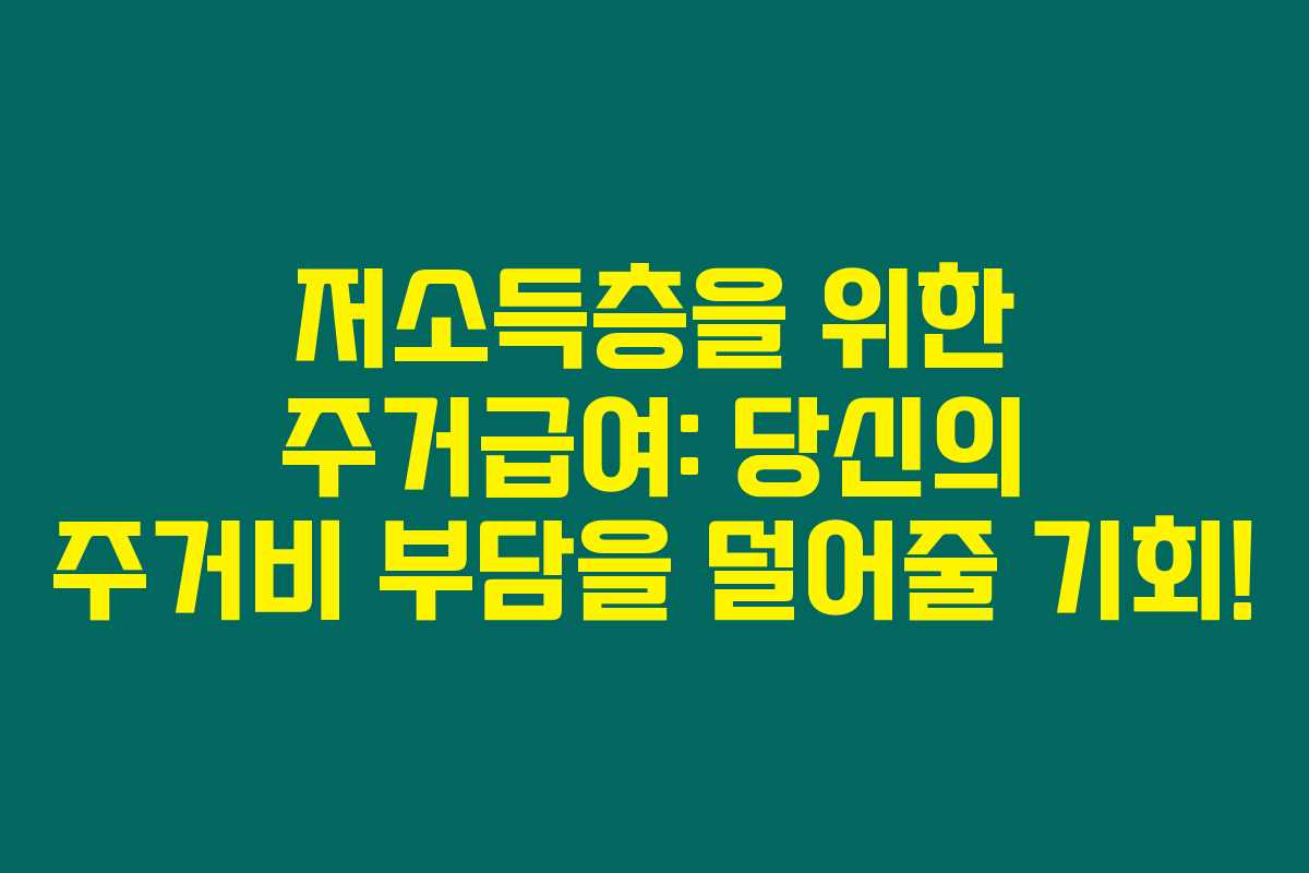 저소득층을 위한 주거급여: 당신의 주거비 부담을 덜어줄 기회!