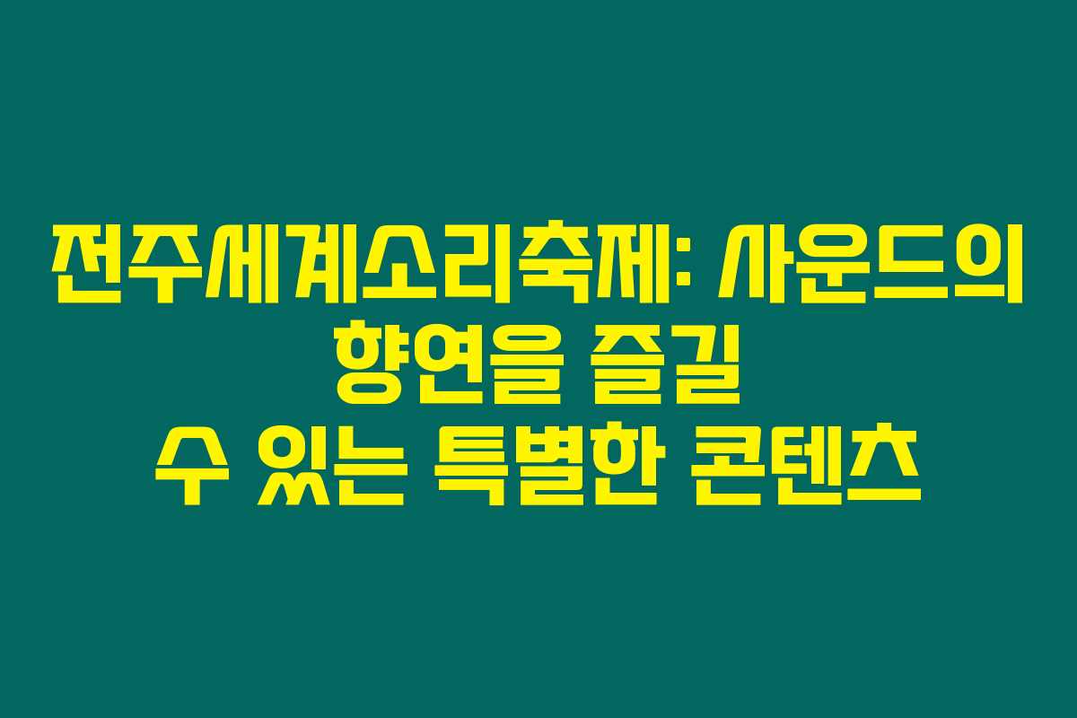 전주세계소리축제는 단순한 공연을 넘어서 한국 전통 음악의 매력을 체험하고, 다양한 장르의 음악을 즐길 수 있는 기회를 제공합니다. 특별한 경험을 추억으로 남기고 싶다면, 다음 축제에 꼭 참여해보세요!