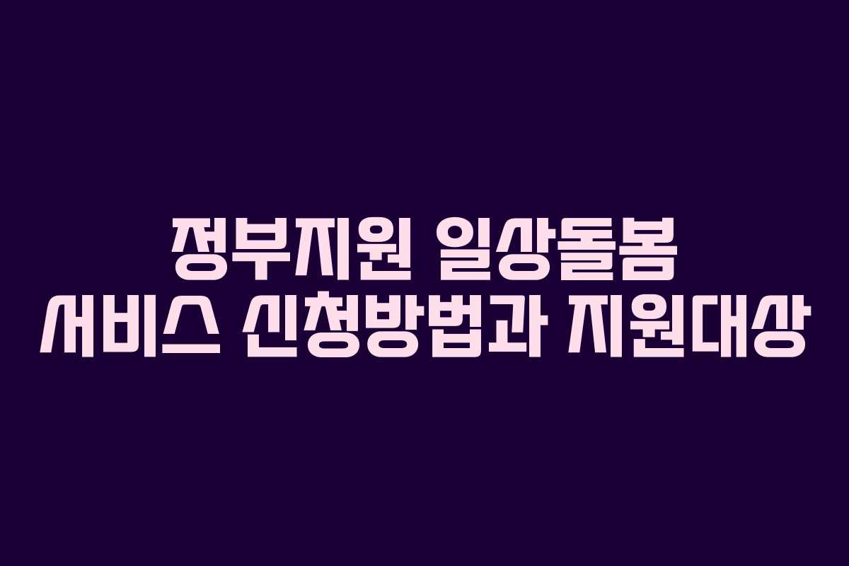 일상돌봄 서비스는 다양한 삶의 양식을 추구하는 현대 사회에서 가족들이 겪는 돌봄의 어려움을 해결하기 위한 맞춤형 서비스입니다. 이 서비스는 누구나 신청할 수 있으며, 중장년과 청년을 주요 지원 대상으로 합니다. 일상돌봄 서비스의 신청 방법과 지원 대상에 대해 자세히 알아보겠습니다.