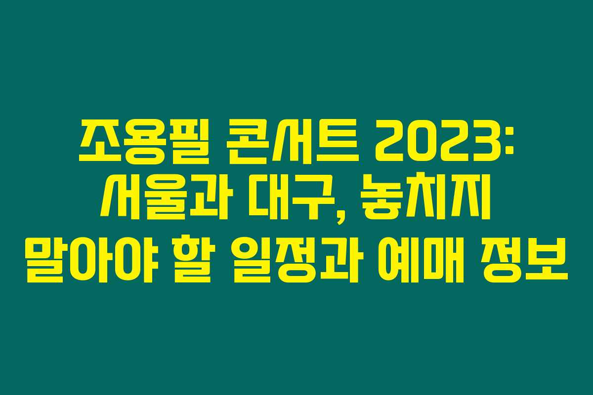 조용필 콘서트 서울과 대구는 연말을 더욱 특별하게 만들어 줄 행사로 많은 분들이 기대하고 있어요. 팬 여러분들도 이번 콘서트를 통해 2023년을 마무리하는 멋진 기회를 놓치지 마세요! 많은 즐거움이 가득하길 바랍니다.