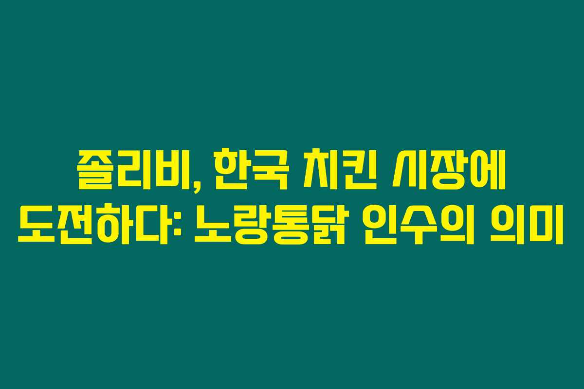졸리비, 한국 치킨 시장에 도전하다: 노랑통닭 인수의 의미