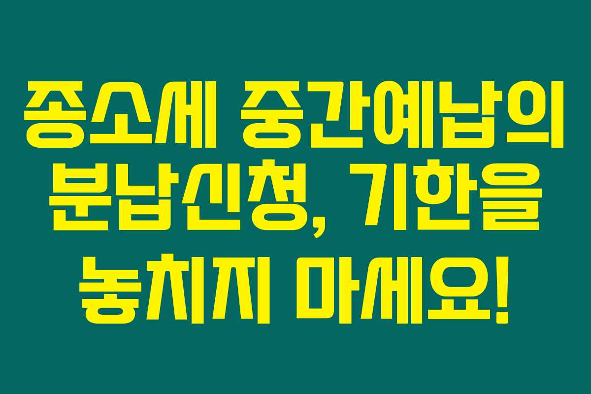 제가 직접 확인 해본 결과로는, 종합소득세(종소세) 중간예납의 분납신청에 대한 정보를 자세히 알아보았습니다. 종소세 중간예납은 자영업자 및 개인사업자가 세금을 미리 납부함으로써 경제적 부담을 줄이고 연체를 방지하는 데 큰 도움이 됩니다. 이제 아래를 읽어보시면, 분납 신청 방법과 기한에 대해 더 많은 정보를 얻을 수 있을 거예요.