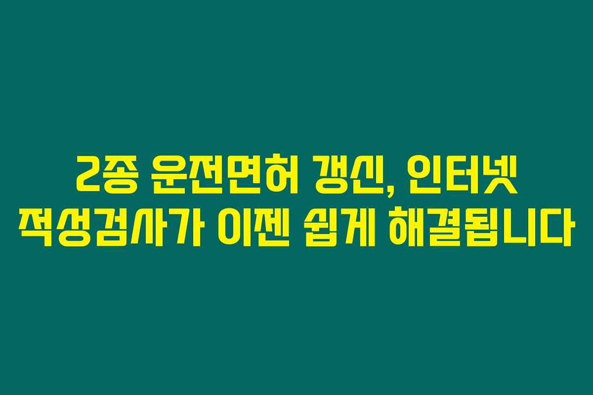 운전면허 갱신 때문에 고민하고 계신가요? 특히 2종 운전면허를 소지하고 있다면 적성검사 없이도 간편하게 인터넷으로 갱신할 수 있다는 사실! 아래를 읽어보시면 여러분의 갱신 과정이 얼마나 쉬워질 수 있는지 확인할 수 있습니다.