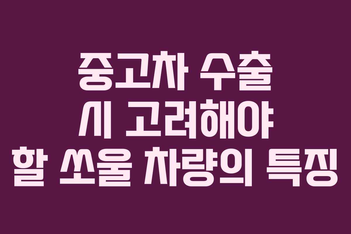 중고차 수출 시장에서 쏘울은 많은 인기를 끌고 있습니다. 특히 가솔린 모델에 대한 수요가 높으며, 차량의 상태와 옵션에 따라 가격이 크게 달라질 수 있습니다. 이 글에서는 쏘울 차량의 주요 특징과 수출 조건, 그리고 판매 시 주의할 점을 살펴보겠습니다.
