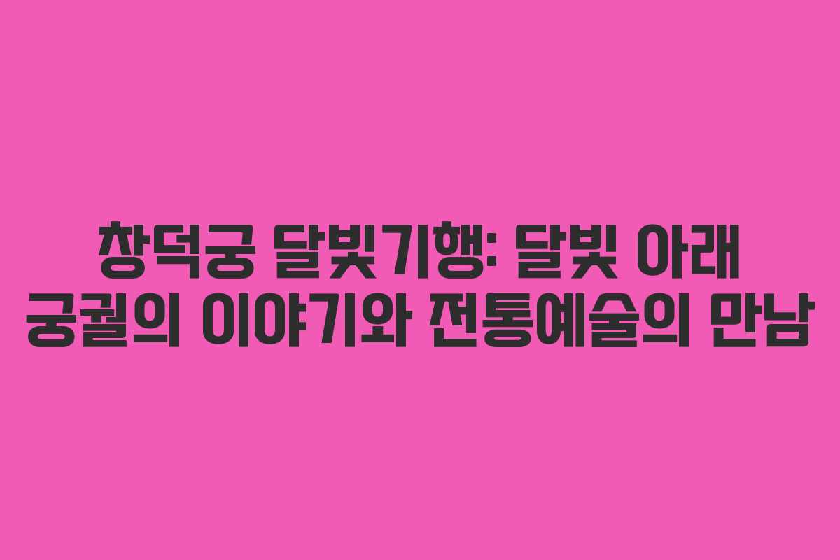 아래를 읽어보시면 창덕궁 달빛기행의 목적, 출발 지점, 동선, 공연 포인트, 예매 방법까지 한눈에 파악할 수 있습니다. 달빛 아래 녹음과 해설이 어우러지는 특별한 밤 경험의 매력을 확인해보세요.