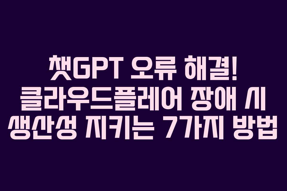 클라우드플레어 장애 외에도 챗GPT 서버 문제나 사용자 환경 문제로 인해 오류가 발생할 수 있습니다. 아래의 7가지 해결책을 통해 문제를 진단하고 신속하게 업무에 복귀할 수 있습니다.