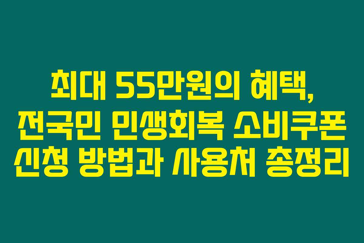 제가 직접 리서치한 바로는 정부에서 발표한 전국민 민생회복 소비쿠폰에 대한 정보가 정말 유익한 것 같아요. 경기가 어려운 상황에서 소비를 촉진하고 민생을 안정시키기 위해 최대 55만원의 혜택을 받을 수 있다니, 많은 분들이 궁금해 할 수밖에 없겠지요? 아래를 읽어보시면 소비쿠폰 신청 방법, 자격 조건, 사용처 등에 대한 핵심 내용을 자세히 알아보실 수 있답니다.