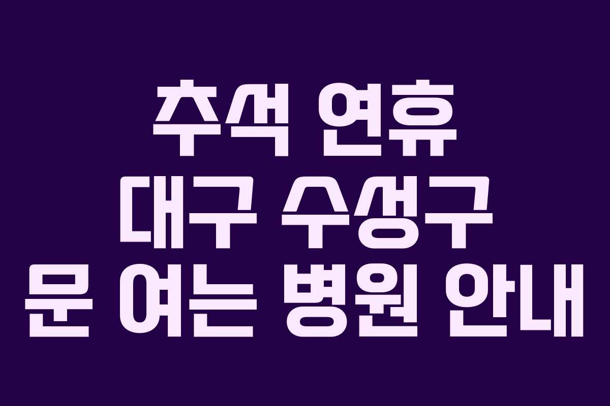 추석 연휴 동안 갑작스럽게 아프신 분들을 위해 대구 수성구에서 운영 중인 병원 정보를 안내합니다. 아프실 때 여러 곳을 돌아다니지 말고, 필요한 병원 정보를 간편하게 확인해보세요.